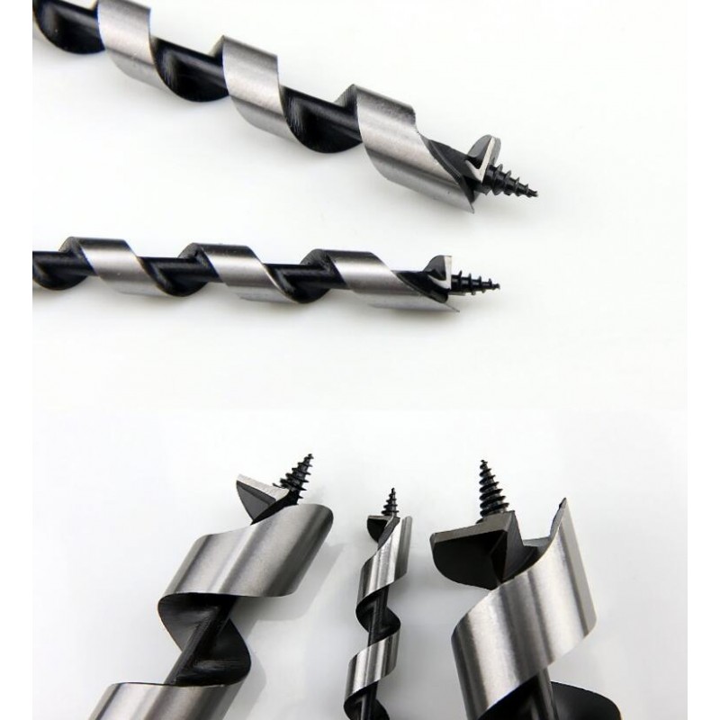 Caja con 75 brocas helicoidales para madera de 9,5 mm. de diámetro y longitud de 15 cm. especialmente indicada para la colocación de válvulas inyectoras a una cara en piezas de madera de hasta 20 cm. de grosor.